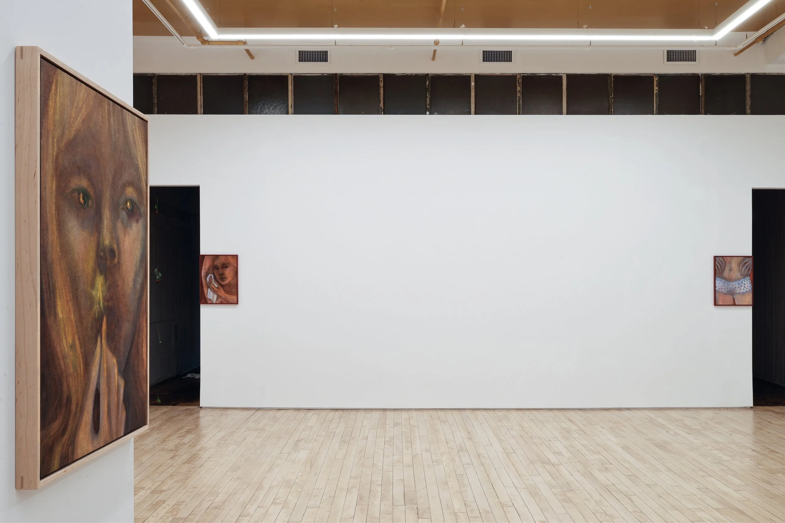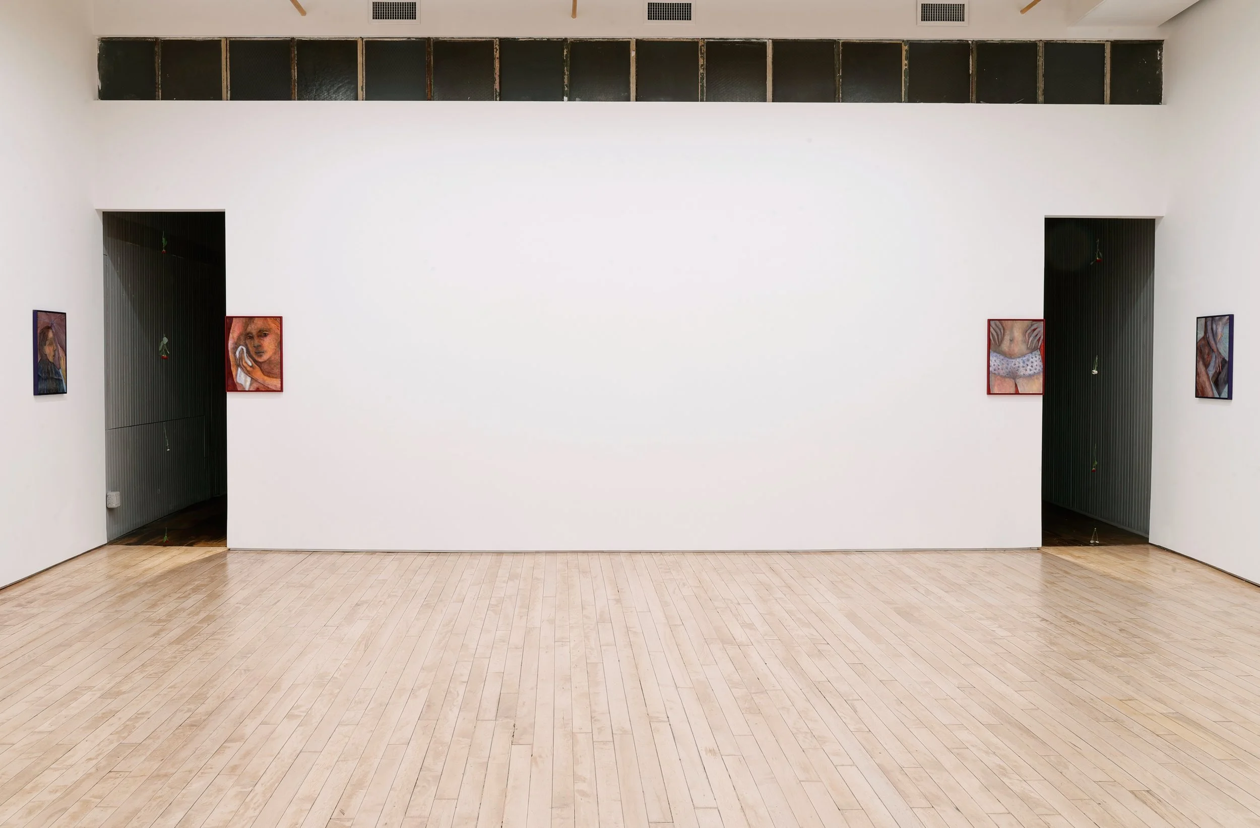 Pauline Rintsch paints reflections and navels. She looks at herself in the mirror, at her friend in the rearview, at her own belly button and those mystic beginnings finding her in dreams. She also bends her figures in acrobatic contortions, elongates their gazes in longing uncertainty, and confronts them in abrasive environments. The settings are usually vague but particular—like wombs. Fluid and hollow.