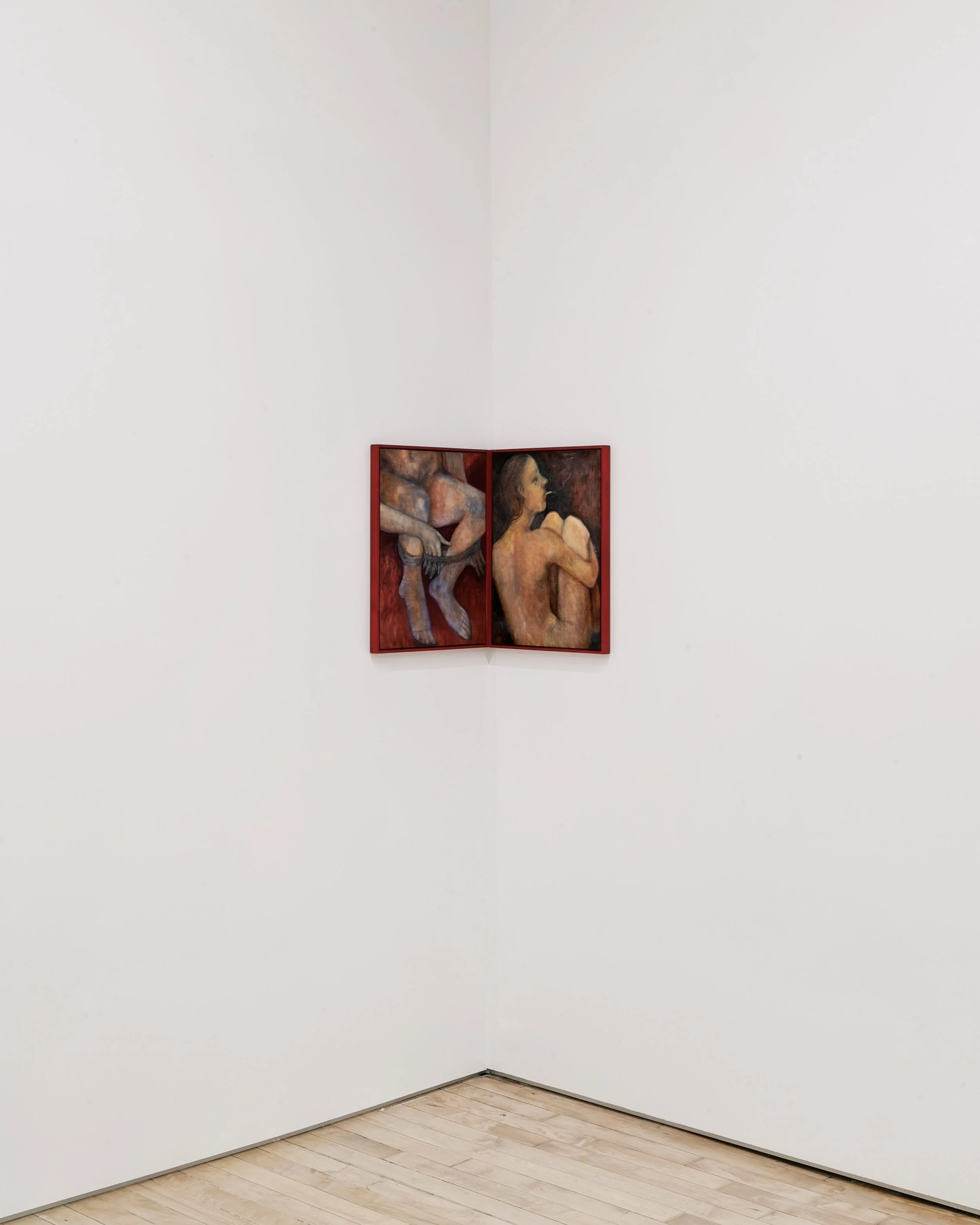 Pauline Rintsch paints with a lucidity under the veneer of delirium, desires delivered as distortions, beginnings effaced like doomed ends. With spontaneity and sedimentation, these paintings liken to archaic preservations of a life palpitating with immediacy. A vision of modernity ripe with mystery, enigma bewildered by banality. In a sleight of hand, Rintsch turns agony into effaced pleasures, ennui into quiet marvels, reveling in an incompleteness that is nothing short of a certain sorcery: undressing by the river, shirt immersing the head, hanging on, coming undone.
